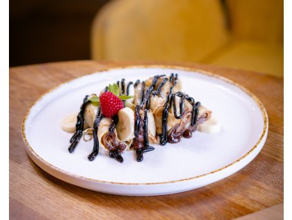 Sladká bodka vo forme domácich palaciniek s nutelou, banánom a čokoládou