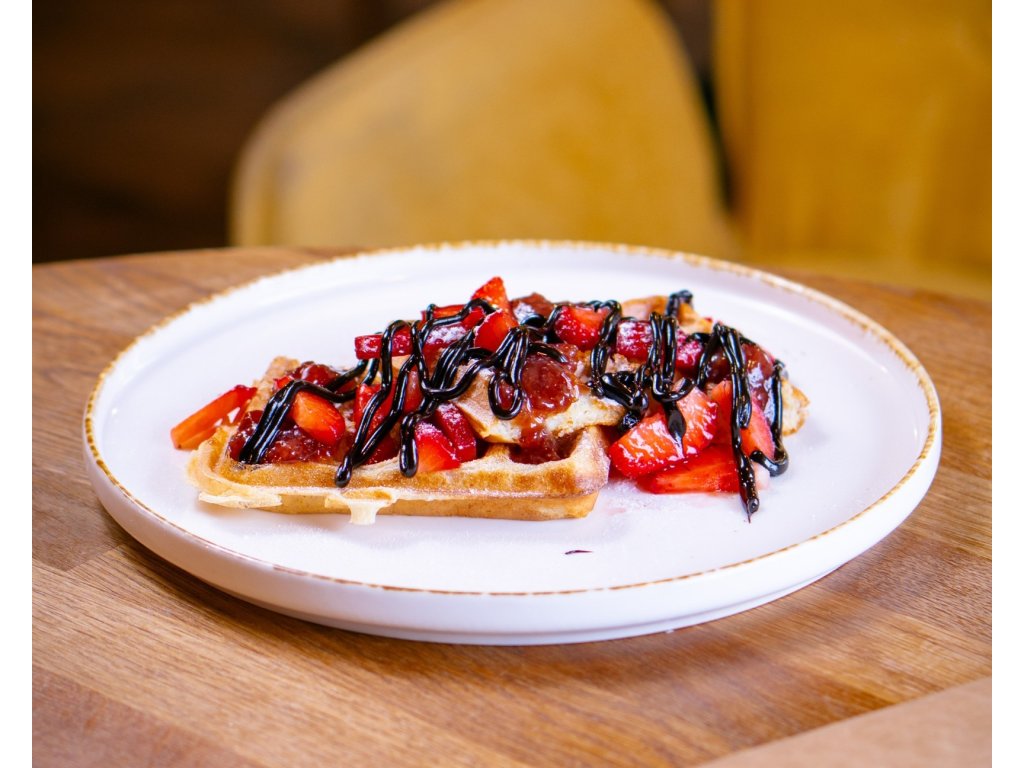 Čerstvé waffle s domácim džemom, ovocím a čokoládou